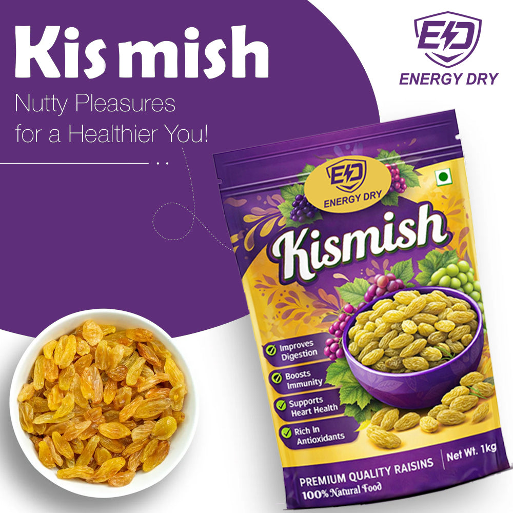 Whether you enjoy them straight from the pack, mix them into your trail mixes and breakfast cereals, or bake them into cakes and breads, Energy Dry Kismish makes healthy eating easy and satisfying.